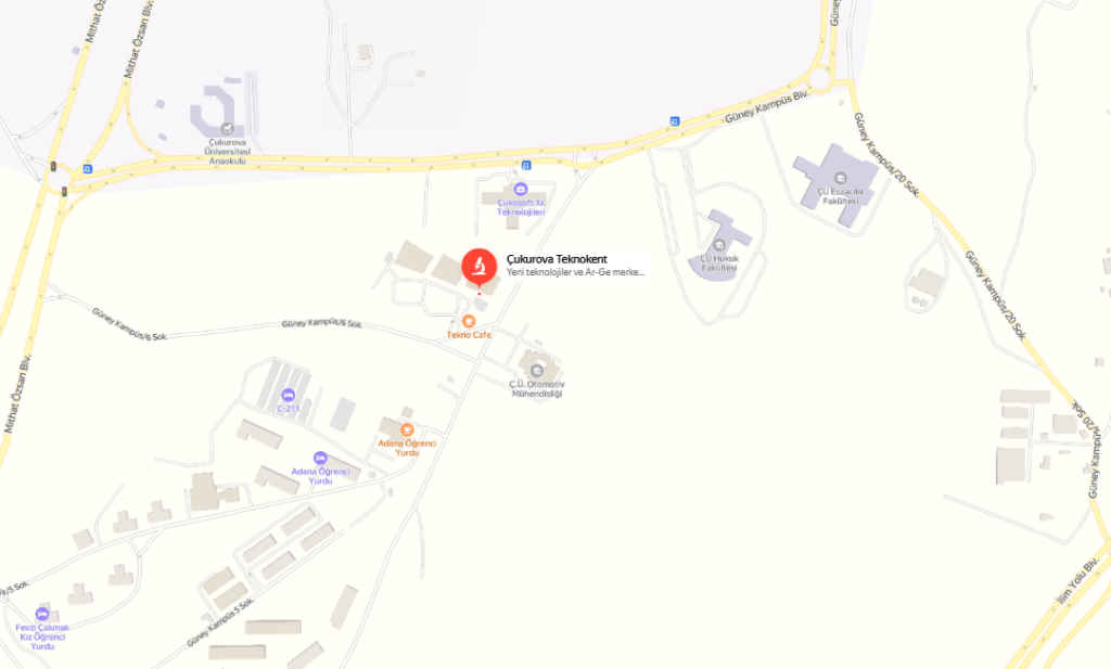 Adresimiz: Balcalı Mahallesi, Güney Kampüs/5 Sokak, No:4, Çukurova Üniversitesi Teknokent